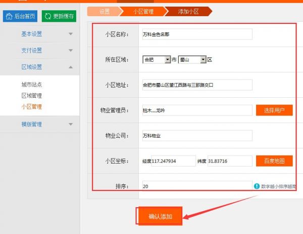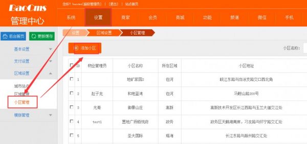 三、BAOCMS添加小区管理